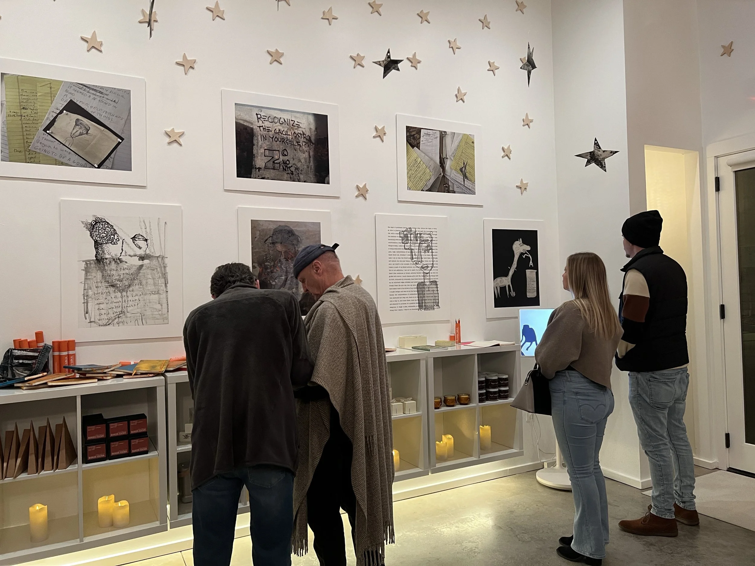 The inaugural exhibition featured artwork by Valarie’s son, Z, alongside pieces by Jordan Watts, the late brother of actor and singer-songwriter Kelsie Watts, who lost his battle with depression at a young age. It also included a dedicated wall of loaned works from other “Shooting Stars”, expanding the exhibition into a shared space of remembrance and expression.
